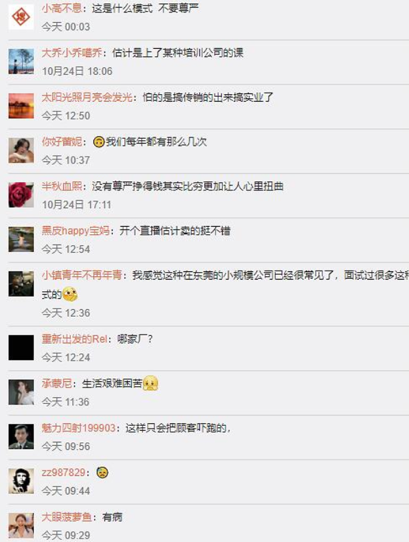 而在近日,一則互相扇耳光的視頻又刷新了網(wǎng)友的三觀(guān)。據(jù)網(wǎng)友爆料,10月21日,廣東東莞某家具廠(chǎng)內(nèi),因家具賣(mài)不動(dòng),銷(xiāo)售業(yè)績(jī)問(wèn)題,多名員工自扇耳光,當(dāng)眾撕喊,不知情的人還以為了走進(jìn)了傳銷(xiāo)組織。