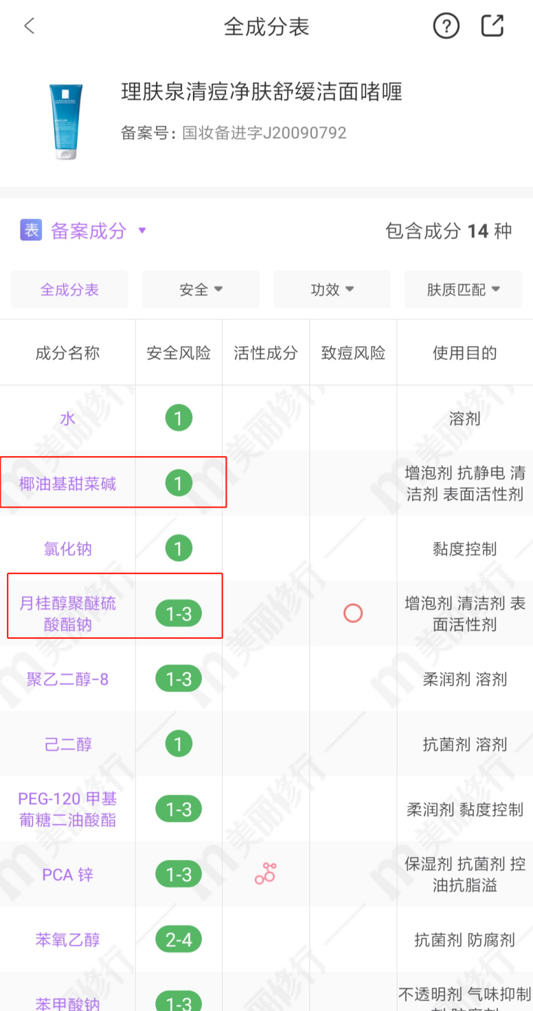 清潔成分主要是椰油基甜菜堿和月桂醇聚醚硫酸酯鈉,可以有效一直皮脂過多的分泌,PH值5.5,不含皂基和酒精,使用起來的感受還是比較溫和的。需要注意的是,使用的時候不能擠太多,不然可能造成清潔不徹底的假滑,像用完沐浴露沒沖干凈的感覺。