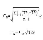 SigmaA表示歷史年化標準差(歷史年化波動率);SigmaM 表示月度總回報率的標準差;n 表示計算期間所含月數;TRt表示第 t個月的基金總回報率;TR 拔表示n 個月的基金總回報率平均值。