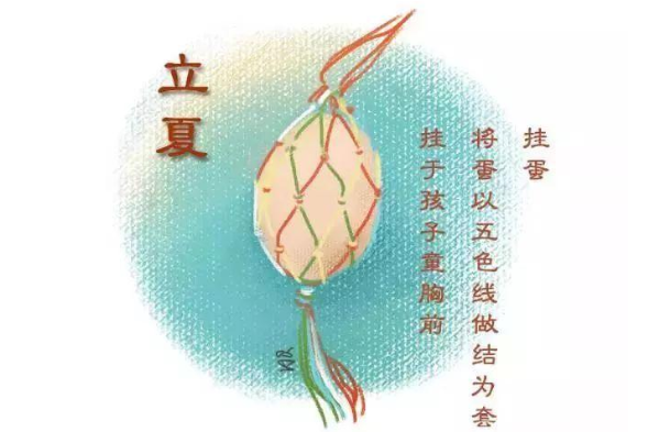 立夏就意味著夏天來了,隨著氣溫上升,炎夏逼近,孩子們很容易身體疲勞、四肢無力;所以據說只要在立夏這天吃雞蛋,就可以預防這個癥狀,“掛蛋”也是立夏常見的習俗之一。