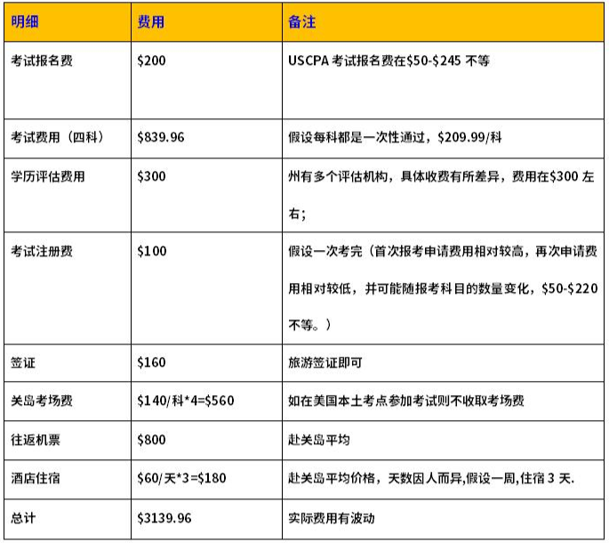實際上美國每個州的考試費用是差不多的,報考USCPA也不完全只看費用的,選州關乎到的主要因素有學歷、學分,美國SSN,要不要申請證照等;USCPA考試的花費如下: